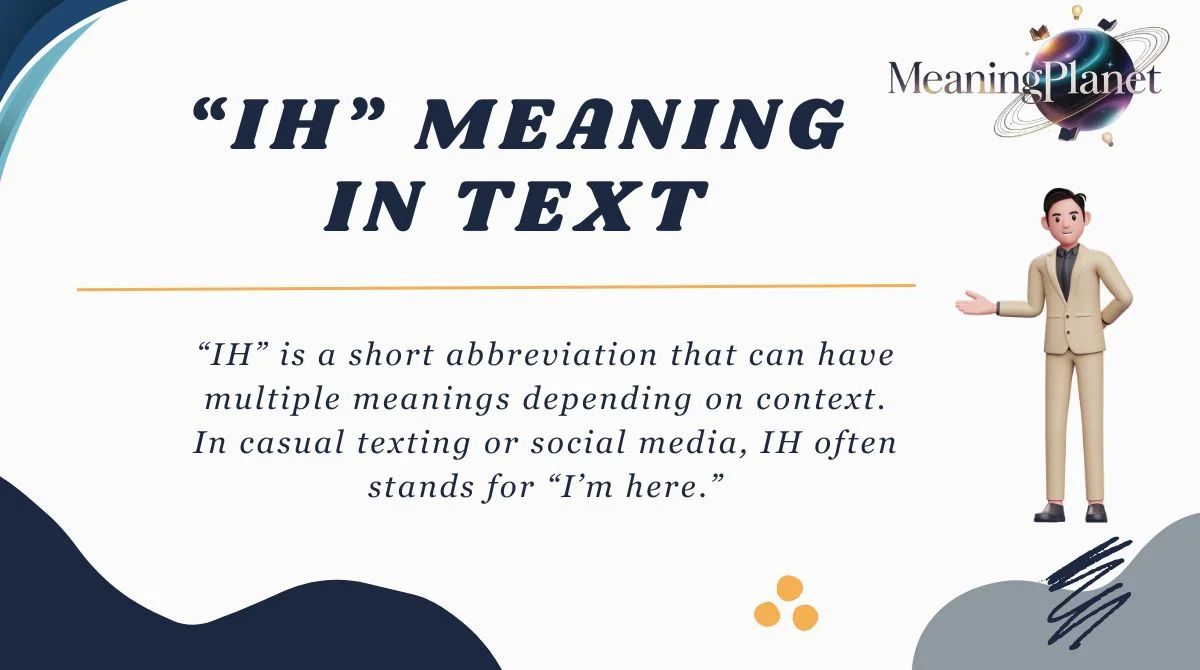 “IH” is a short abbreviation that can have multiple meanings depending on context. In casual texting or social media, IH often stands for “I’m here.” It’s a quick way to let someone know that you’re present or available online. For example, if a friend messages you and you respond with “IH,” it simply means you’re online and ready to talk.