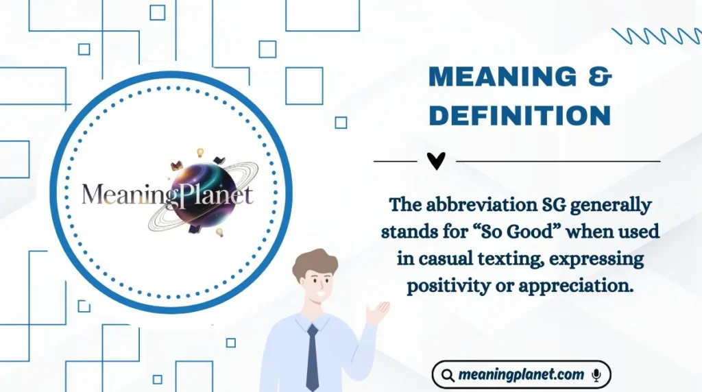 The abbreviation SG generally stands for “So Good” when used in casual texting, expressing positivity or appreciation. For example, when someone says, “That movie was SG,” it simply means the movie was excellent or enjoyable.